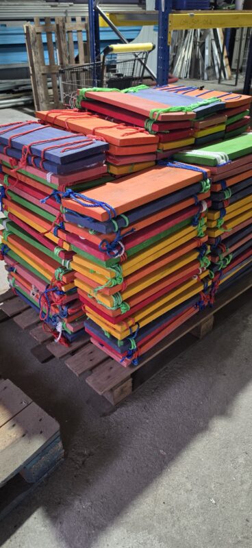 - Estrutura em madeira pintada em várias cores